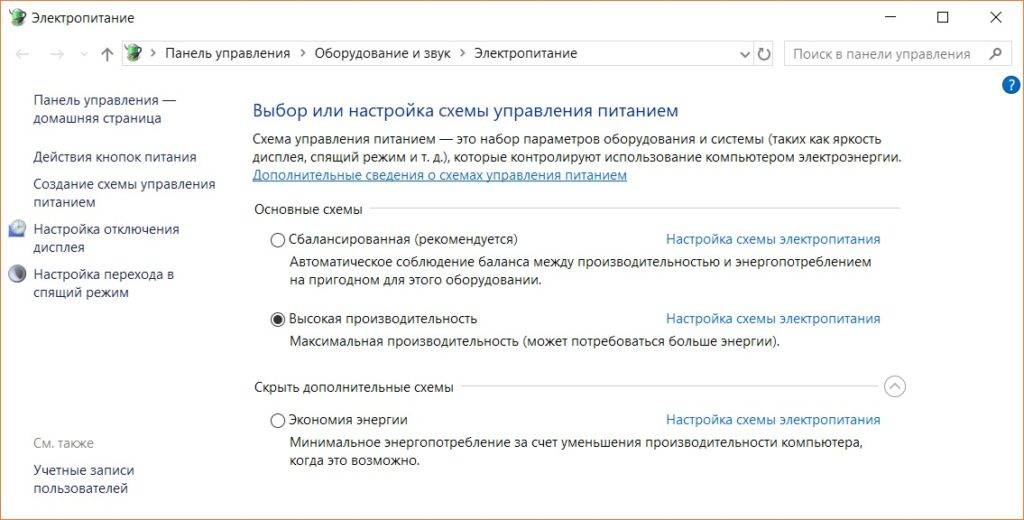 По умолчанию выбрана сбалансированная схема электропитания, которая позволяет в случае низкой нагрузки на аппаратные блоки компьютера снижать их потребление электричества в целях его экономии. Это целесообразно для ноутбуков, т.к. экономия электричества выливается в более длительное время работы от одного заряда батареи. Для стационарного компьютера эта экономия не целесообразна, т.к. он постоянно подключен к электросети. К тому же, разница в потребляемой электроэнергии процессора при полной загрузке и минимальной даже при отключенной схеме энергосбережения в Windows позволяет не думать о том, что вы потратите больше денег на электричество в конце месяца.