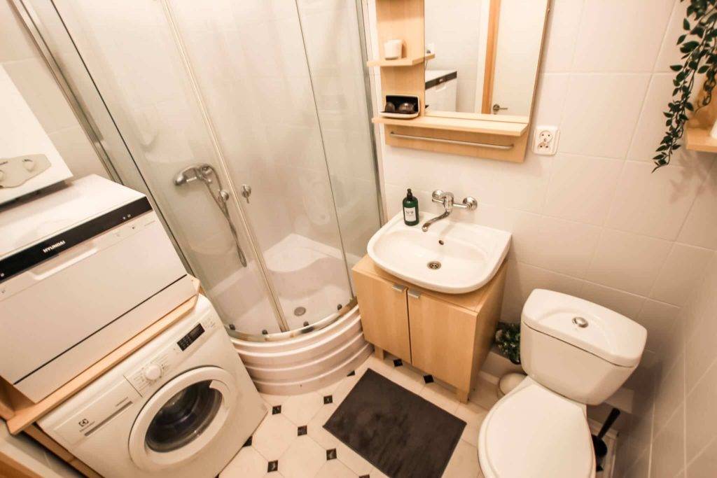 - если площадь ванной комнаты настолько мала, что нельзя установить стиральную машину, то лучше отдать предпочтение душевому уголку;