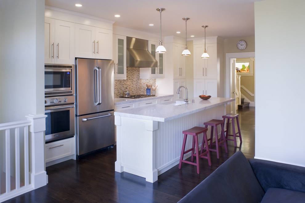 Подсказка: если ваш «остров» строится из нижних ящиков, отсек для микроволновой печи не будет стоить вам стоить дополнительных затрат, но учтите, что вы должны будете подвести электричество к «острову», и сделать это еще на этапе чернового ремонта кухни.