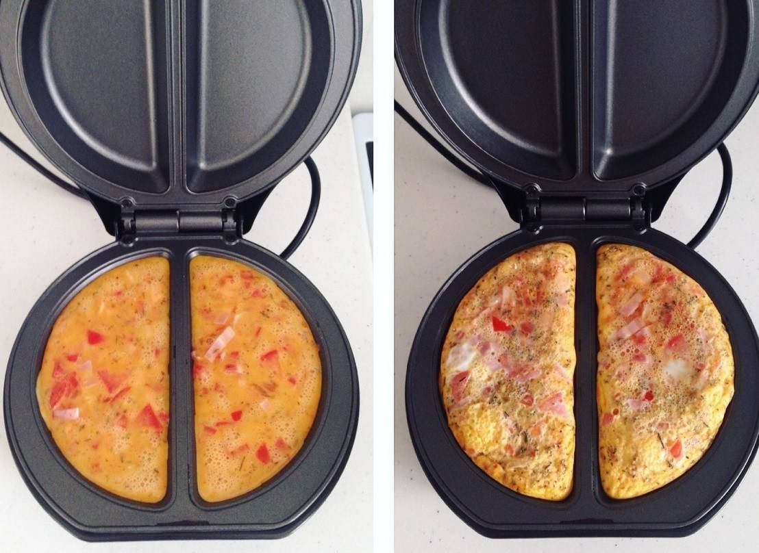Чтобы приготовить омлет, в «сковороду» помещаются необходимые ингредиенты. Далее верхней створкой прибора заготовка для выпекания омлета накрывается, несколько минут ожидания — и вкусный завтрак готов. Но не только одним омлетом интересна такая конструкция. При помощи модели этого типа можно даже приготовить пирог или использовать прибор как своеобразный гриль, чтобы поджарить котлетки или куриные крылышки.