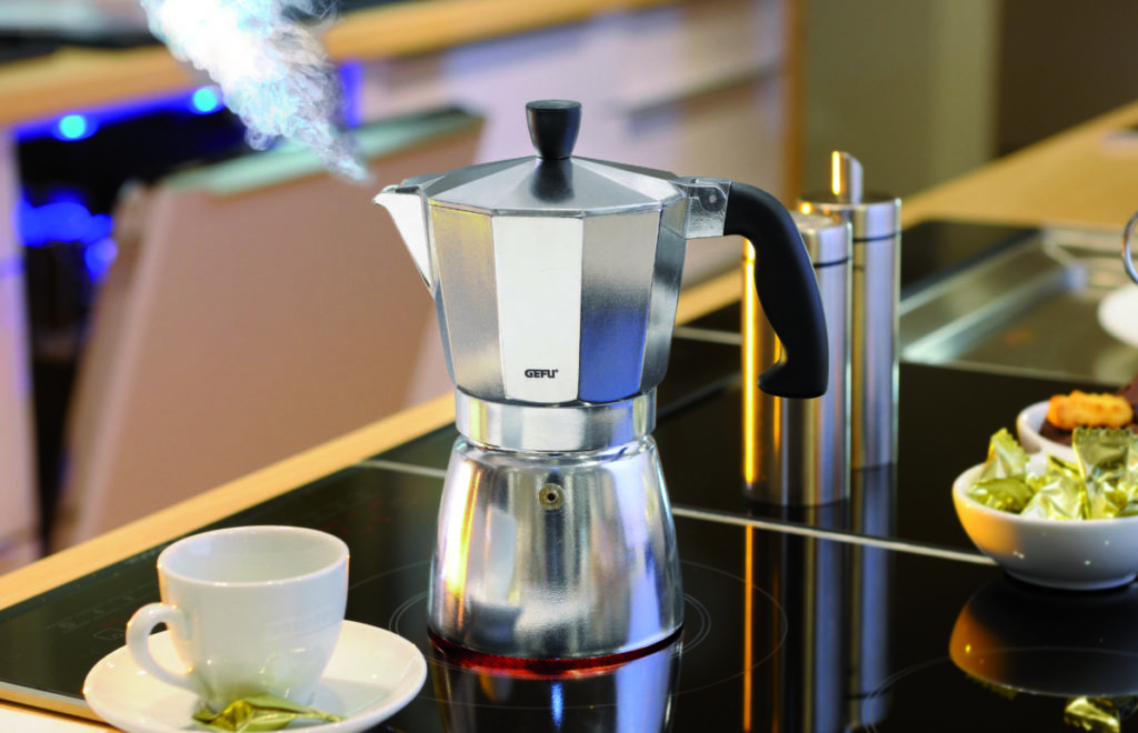 Модель, уходящая своей историей в 1933 год и не изменившаяся до сих пор. Это недорогое устройство имеет восьмигранную форму, не требует тщательного ухода и особых умений в области приготовления кофе. Нижний отсек заполняют водой, чуть выше в емкость насыпают молотые зерна и ставят на плиту до того момента, пока не станет слышно шипение. Напиток получается фильтрованным, без осадка.