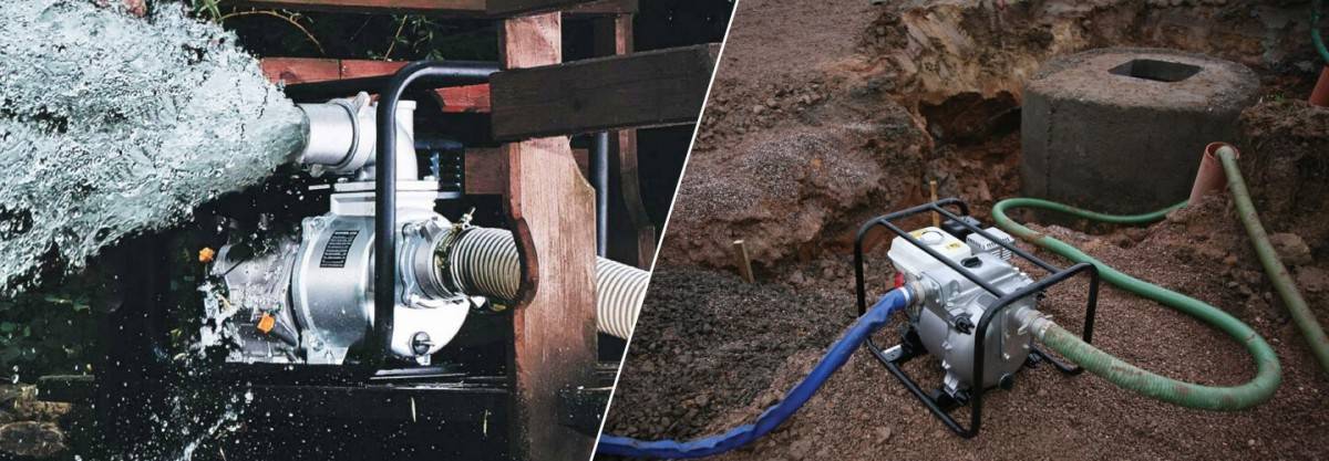 - Мотопомпы для удаления лишней воды. В основном они используются для откачки лишней воды из подвалов, подземных гаражей или строительных площадок. Быстрый и эффективный отвод воды важен для жителей и безопасности здания.