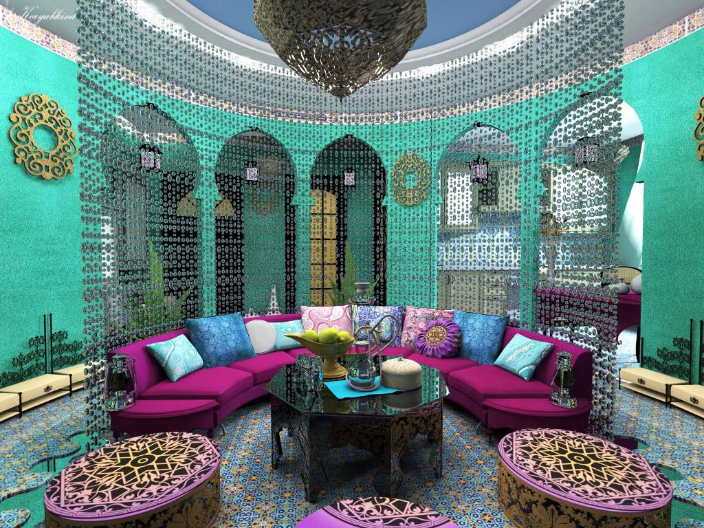 Если в японском или китайском направлении они точечные, скромные и служат лишь для создания акцента, то в арабском – они громогласно заявляют о себе во всех уголках помещения.