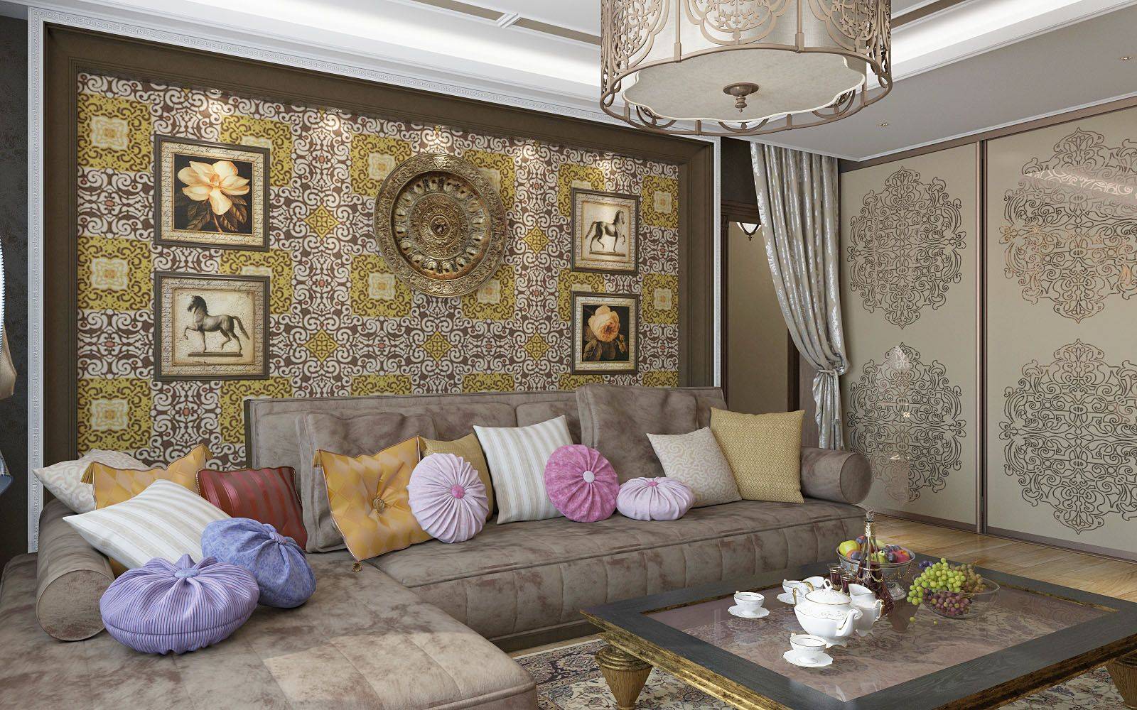 Восточный стиль в интерьере гостиной квартиры