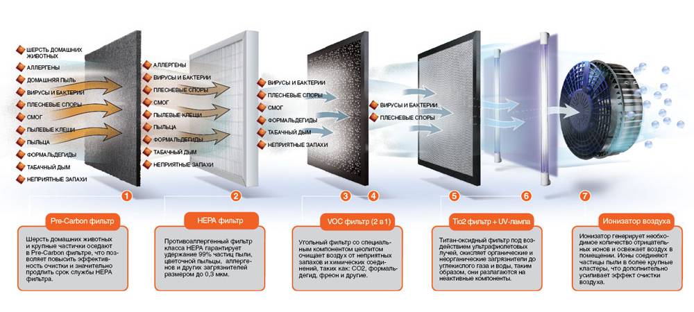 Многие рекламные ролики описывают это общими словами. Наподобие, увлажняющий и дезодорирующий фильтры. Первый занимается насыщением воздуха парами воды, второй очищает поток от запахов. Далее идет еще одна ступень, которая активно борется с бактериями.