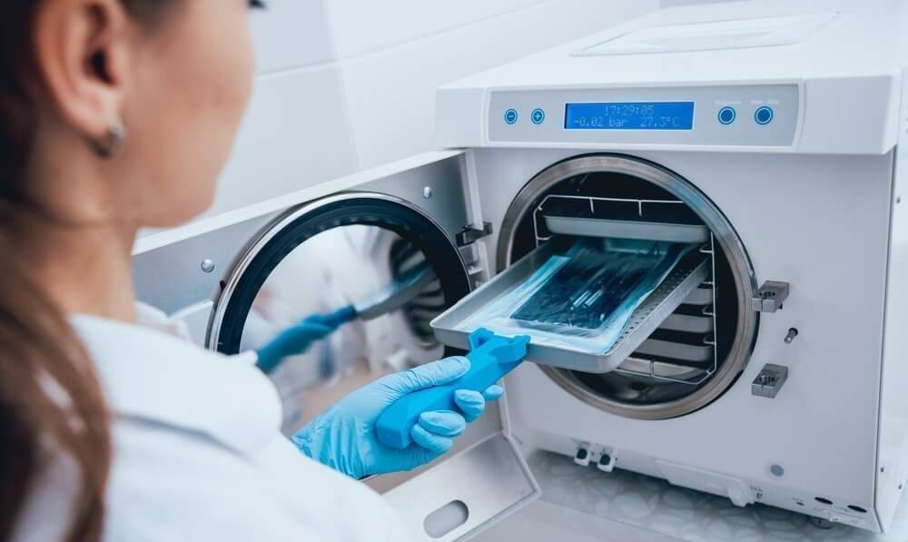 - Ультразвуковой стерилизатор или, по другому, ультразвуковая мойка — очищает при помощи вибрации специального раствора, обволакивающего приборы. При этом ультразвуковая ванночка не является подходящим прибором для этапа стерилизации. С помощью устройства можно совместить дезинфекцию и предстерилизационную очистку, сократив количество шагов обработки с трех до двух. После ультразвуковой чистки приборы обсушиваются и помещаются в сухожар или автоклав.