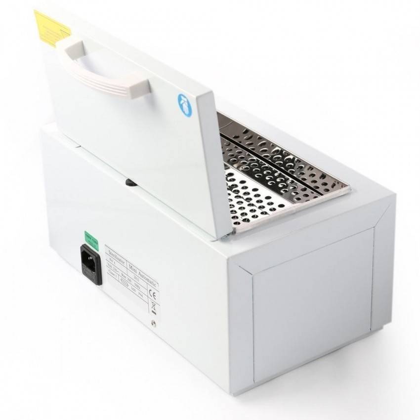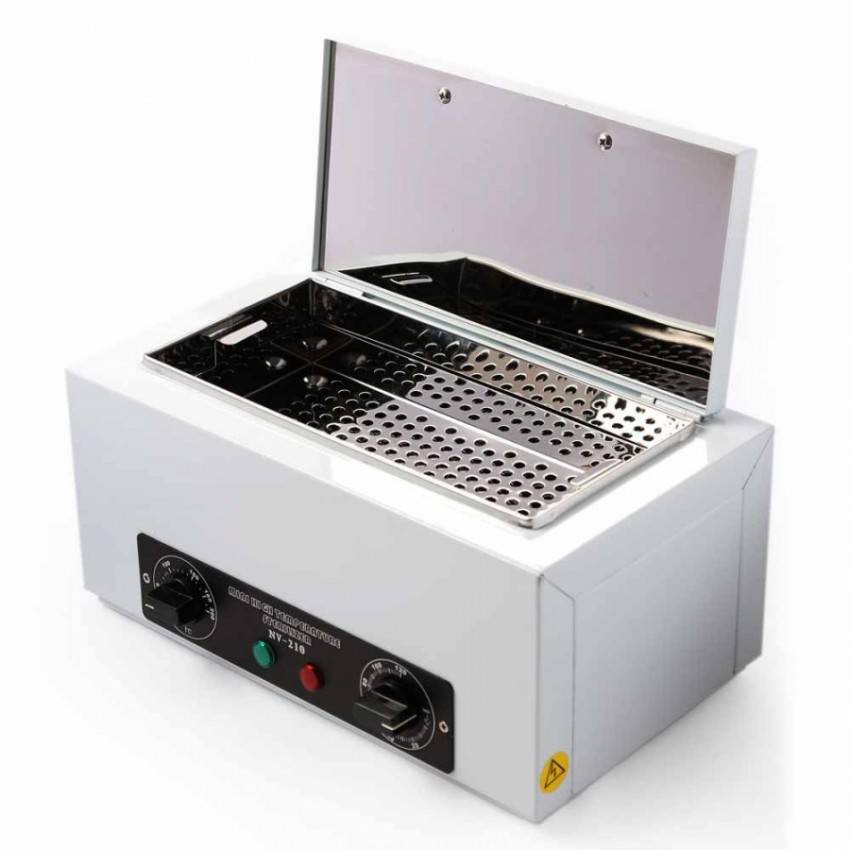 - УФ-стерилизатор. Ультрафиолетовый прибор является стерилизатором только условно — большинство микроорганизмов выживают при воздействии ультрафиолета. УФ-шкафы применяются в качестве промежуточного места хранения после обработки в сухожаре или автоклаве до использования инструментов и не могут заменить их на этапе стерилизации;