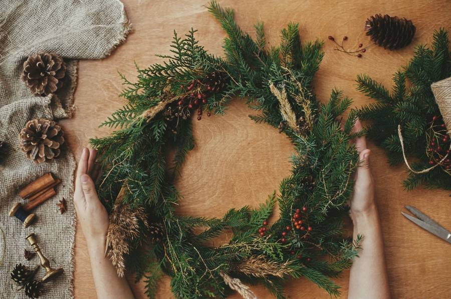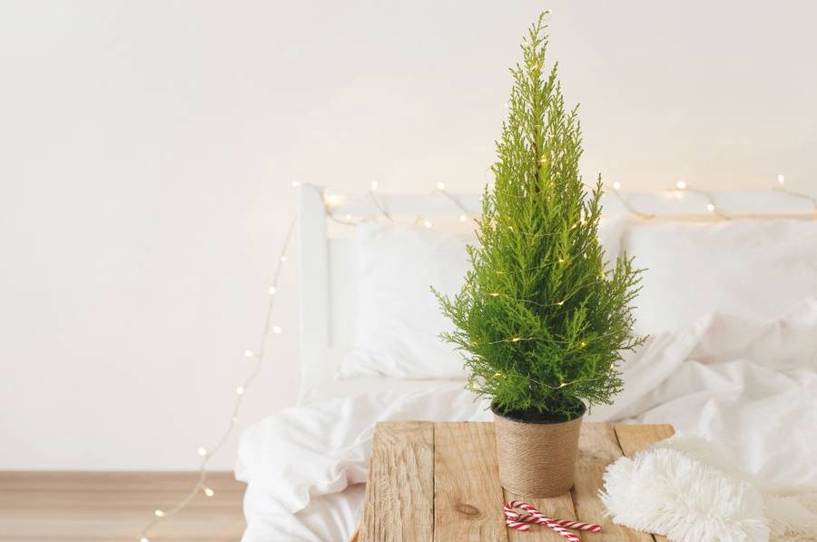 Лаконичный и не менее праздничный вариант живой елки. Он не занимает много места, дает не меньше аромата, чем полноценное дерево и выглядит очень нарядно.