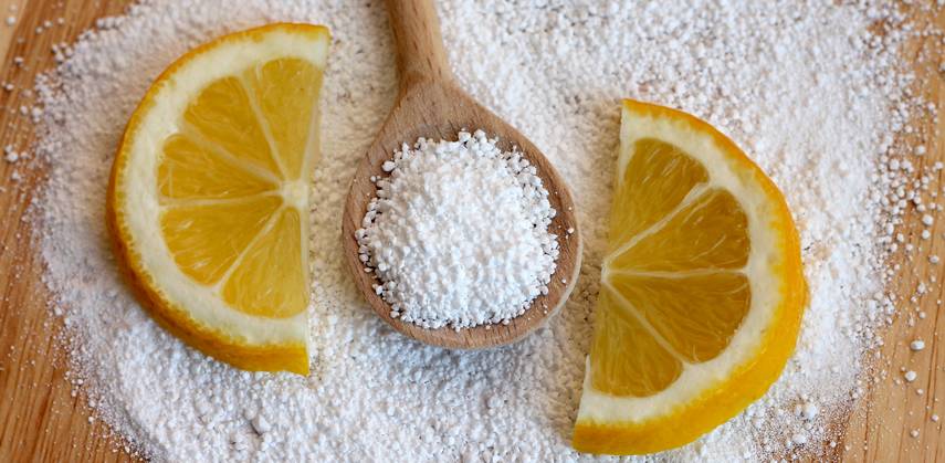 Отмывание плиты упрощается при использовании пищевой соды в сочетании с другими продуктами, которые есть в доме. Её можно наносить на поверхность, предварительно обработанную лимонной кислотой или уксусом. Кислота и щёлочь вступают в реакцию друг с другом. Благодаря такому сочетанию от пятен не остаётся и следа. Плитка тоже не запачкается.