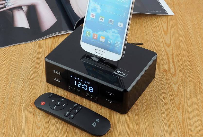 Две других прячется рядом с общим столом. Одна — для смартфона жены, она включает аудиокниги. Вторая — моя, и она заставляет смартфон открыть приложение со свежими новостями и прогноз погоды.