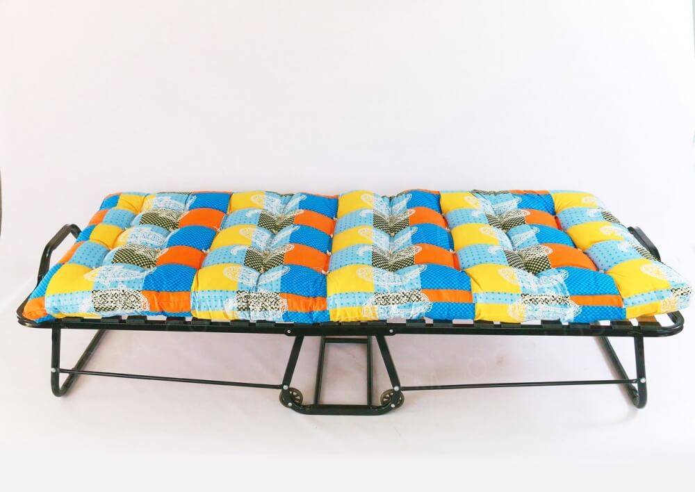 Далеко не все раскладушки снабжаются штатным матрасом. В большей части случаев придется докупать матрас отдельно. В первую очередь стоит помнить, что его размер должен совпадать со спальным местом. Все раскладушки укладываются в стандартные размеры, проблем с подбором матраса возникнуть не должно.