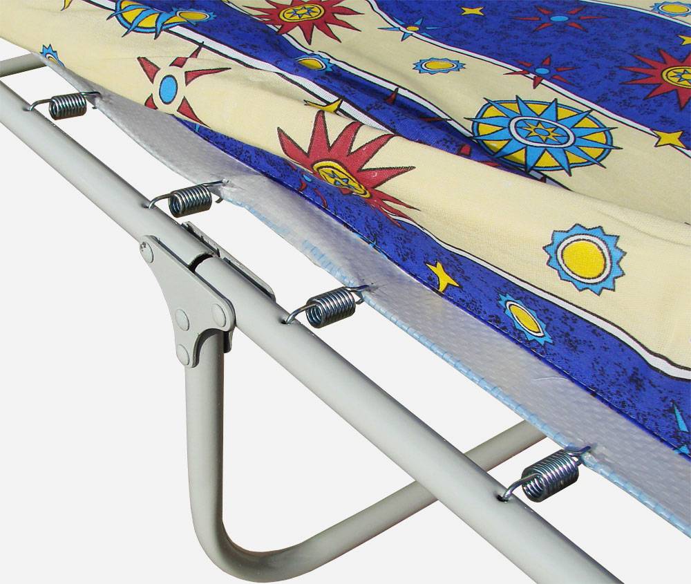 Также встречаются идейно близкие к классической конструкции – натяжные раскладушки или, как их еще называют, раскладушки с натянутым полотном. Без пружин.