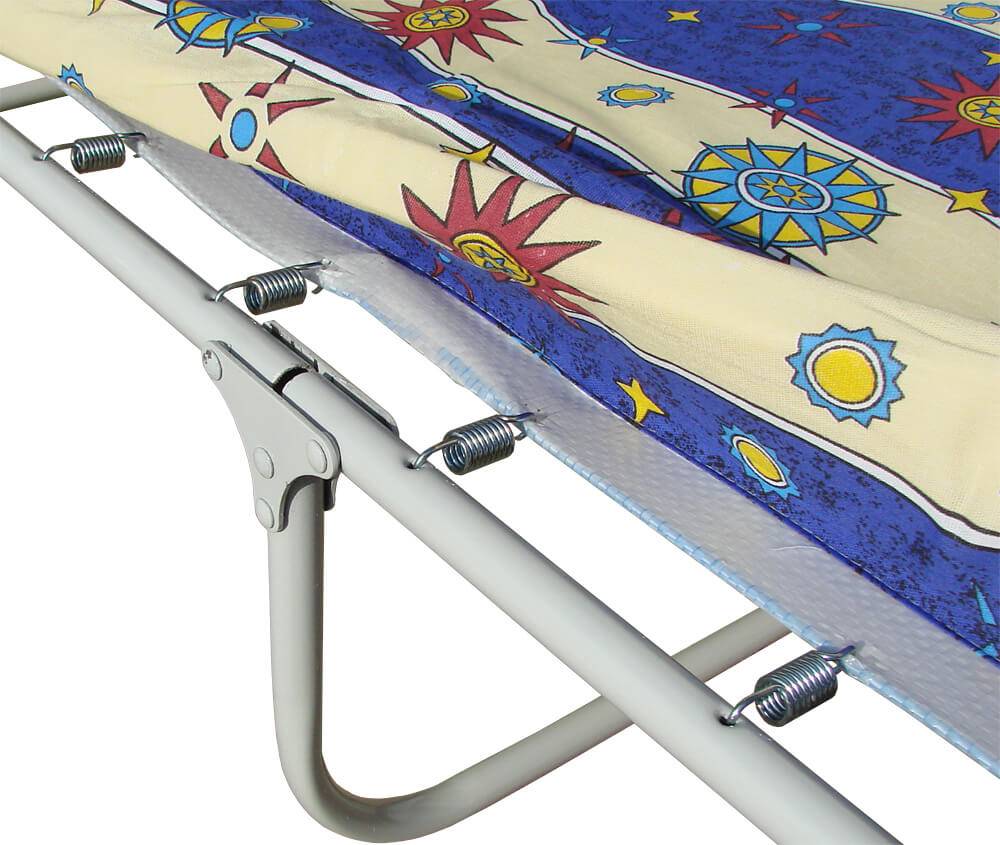 Как правило, модели изготавливают из плотного, износостойкого материала (пропиленовой ткани), предназначенной для кемпинговой мебели. В производстве используются пружины. Не беспокойтесь о прочности изделия. Классические раскладушки выносливые благодаря стальному, надежному каркасу.