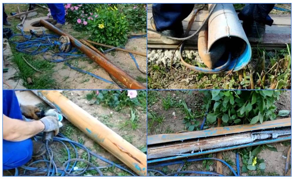 Для закрепленной трубы важно, чтобы она была ровной. Силовой кабель расправляют и выравнивают
