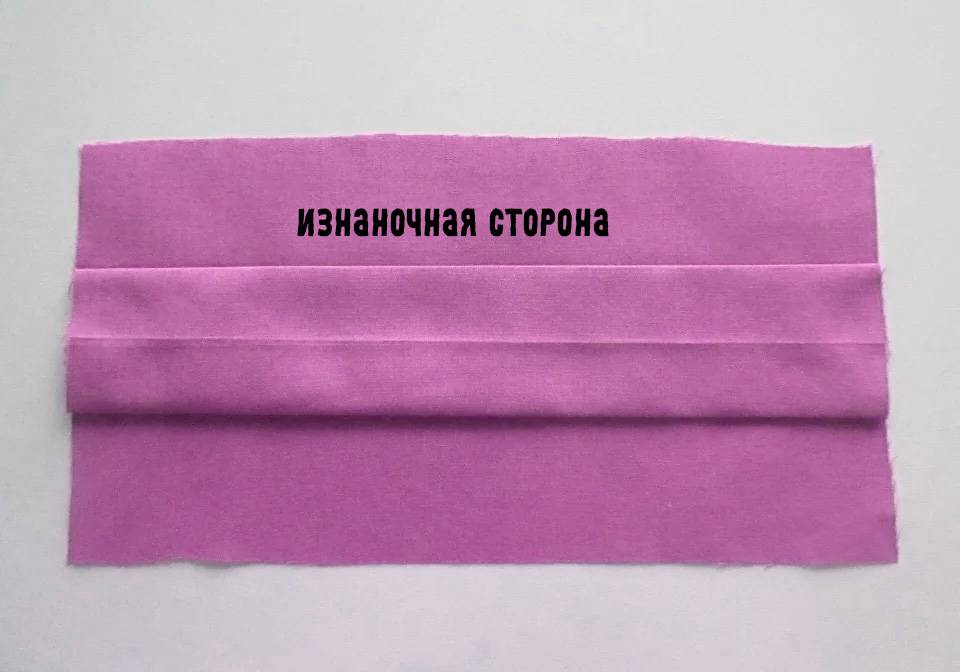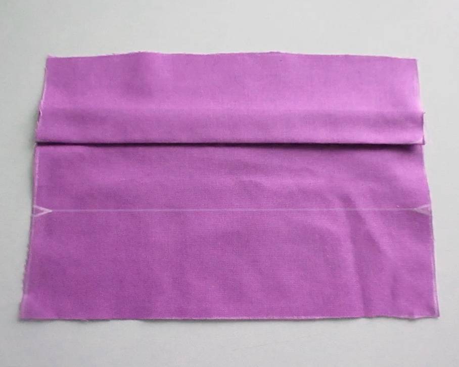 Заготовку размером примерно 50 х 30 сантиметров нужно сложить пополам вдоль длинной стороны и прошить с двух сторон. Затем вывернуть на лицевую сторону и расположить так, чтобы шов получился посередине длинной стороны (наподобие рукава). После этого заготовку сложить вдвое вдоль короткой стороны и прошить с отступом в один сантиметр от края.