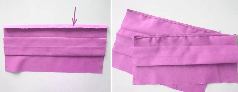 Шаг 9. Прошейте длинные края будущей маски, а затем выверните ее. Прошейте боковые края так, чтобы получились «кулиски», позволяющие вдеть в них шнурок или резинку.