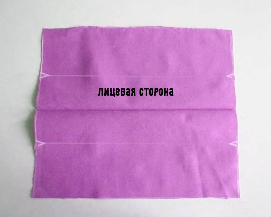 - развернуть кусок ткани на ровной поверхности и сложить вчетверо;