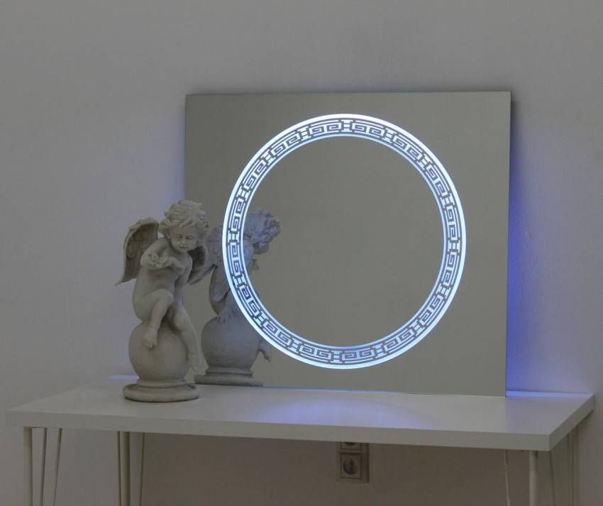 Возможен вариант изготовления подсветки, расположенной с обратной стороны. Принцип оформления конструкции тот же, что и описан в предыдущем варианте. Просто светодиодную ленту следует прикрепить изнутри зеркала. В данном случае достигается эффект ровного, мягкого света без образования теней.