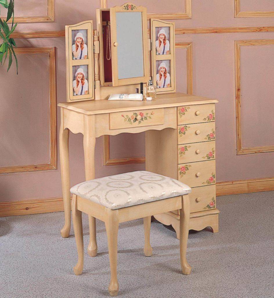 Собранный туалетный столик можно декорировать различными способами. Деревянные изделия украшаются роспись или техникой декупажа