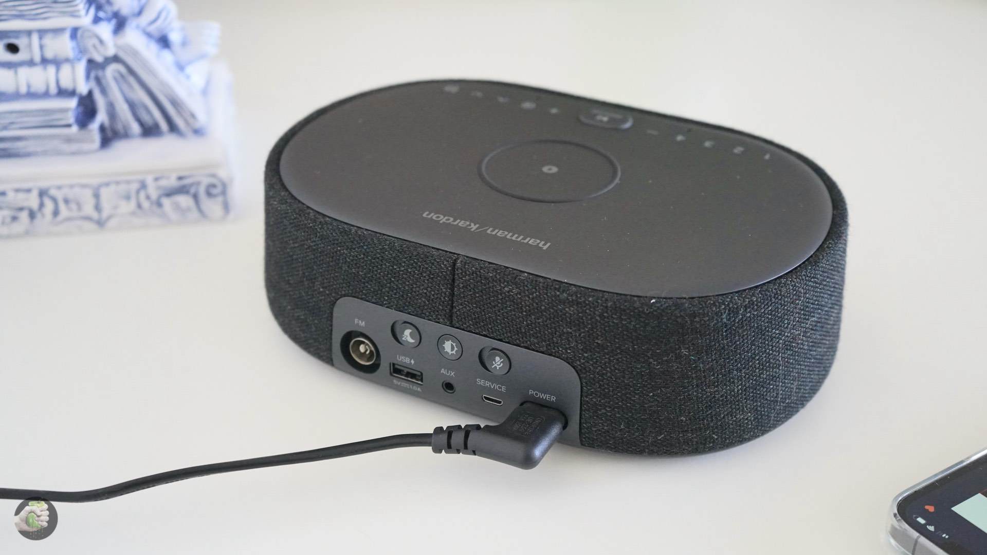 Сзади тоже есть кнопки, можно отключить микрофон (он работает с ассистентом Google), отрегулировать подсветку, отключить Wi-Fi. Есть тут и разъём USB — кроме беспроводной зарядки возможна и проводная. И ещё разъём 3,5 мм! Я удивляюсь, сколько всего напихали в этот маленький корпус. Ведь если вы не будете пользоваться потоковыми сервисами, то в вашем распоряжении Bluetooth, обычное FM-радио — в комплекте есть антенна.
