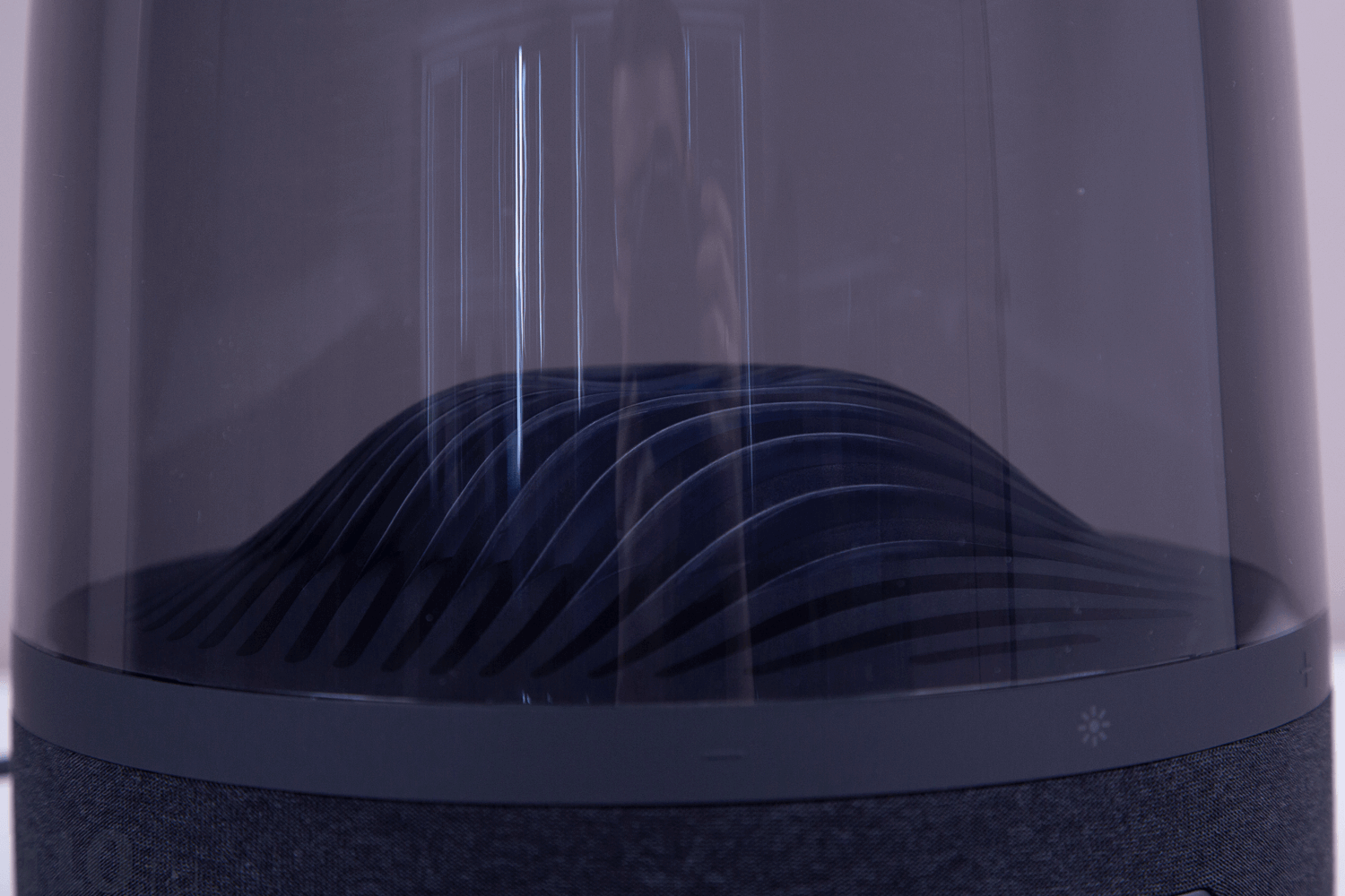 Мне кажется, если бы Apple сделала HomePod на пару лет позже, он бы выглядел именно так. Правда, внешний вид колонки от Harman Kardon можно без угрызений совести назвать эталонным, словно сам Джонатан Айв приложил руку к ее созданию. Стеклянная часть создана специально так, чтобы по-минимуму собирать отпечатки пальцев: я долго осматривал колонку, трогал ее руками, и после этого даже не пришлось протирать ее от отпечатков пальцев, как это обычно происходит.